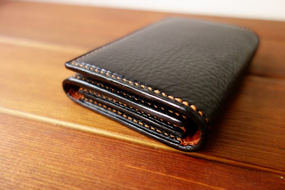 イタリアンレザーの名刺入れ ブラック×ブラウン タンニン鞣し