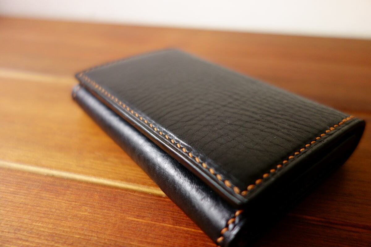 イタリアンレザー・アリゾナのブラックとブラウンを用いた名刺入れです。